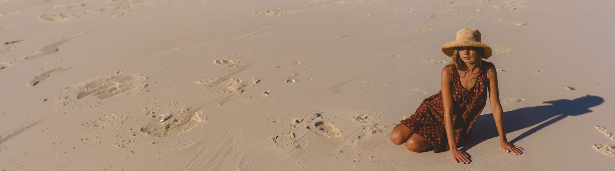 Sundress Midi Peach — full length beach portrait, model in straw hat, sleeveless silhouette with tie-gather neckline and A-line skirt, hand block print peach floral cotton, artisan Jaipur India | Daughters of India Sundress Midi Peach — studio full length front view, model facing camera, sleeveless sundress with tie-gather neckline, flared A-line skirt, hand block print peach floral cotton, artisan Jaipur India | Daughters of India
