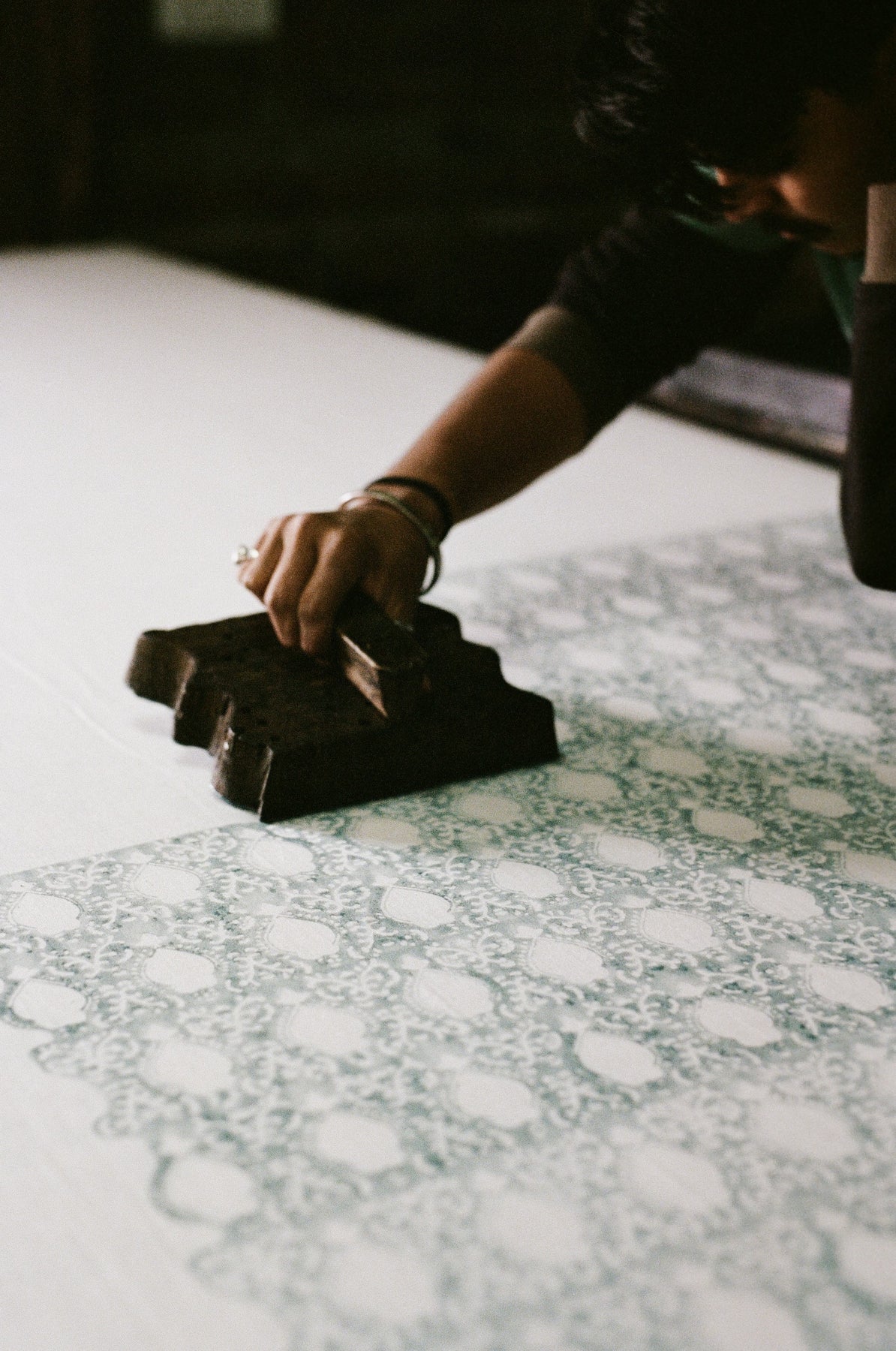 This beautiful hand block printed style has been ethically created by artisans in the Sanganer district of Jaipur, India. Six different wood blocks have been used in the print creation of our Jasmine Dress. After being intricately hand-carved, the wood blocks are stamped in multiple layers of soft blue with delicate undertones of sea green on the finest quality cotton. The printed fabric has then been carefully hand-crafted to create this stunning feminine design.